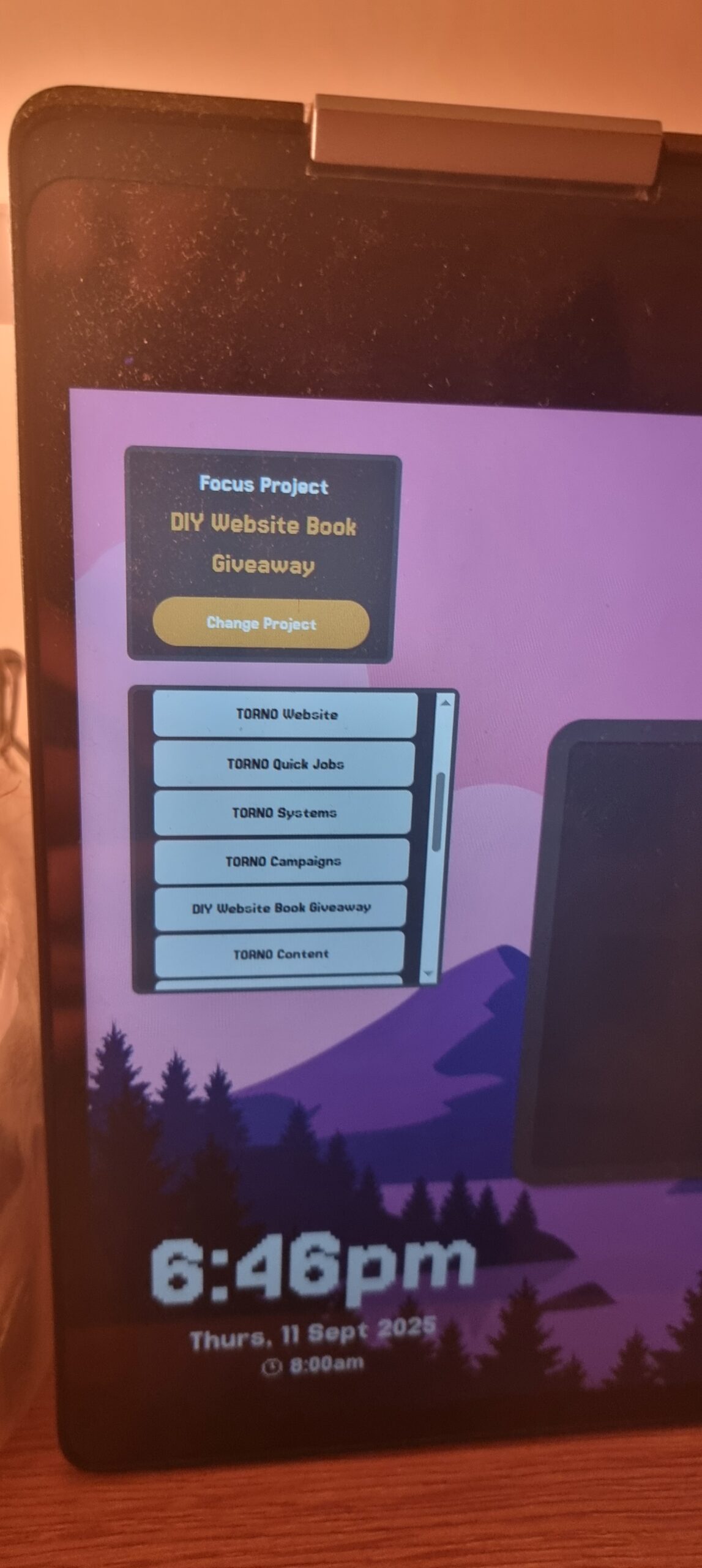 • Displays daily need-to-know info (tasks, reminders, weather) on a monitor.